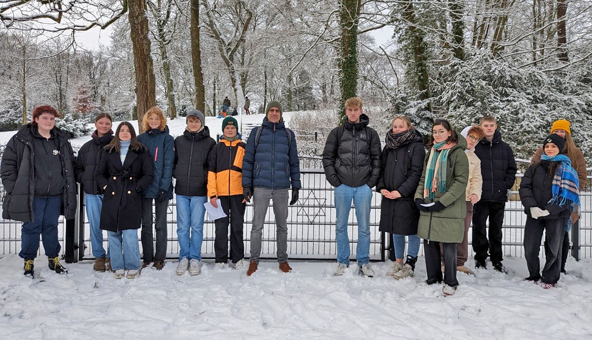 Am 16. Januar 2024 unternahm die 10 bili gemeinsam mit dem 10er-Religionskurs von Frau Andrews einen Rundgang durch die Stader Innenstadt. Beide Lerngruppen wurden gemischt und in zwei neue große Gruppen aufgeteilt. Eine Gruppe machte sich mit Herrn Schönstedt, die andere mit Frau Andrews auf zu verschiedenen Punkten in Stade, an welchen der im Religions- und Geschichtsunterricht thematisierte Nationalsozialismus vor Ort deutlich wurde. An jeder Station, wie etwa dem jüdischen Friedhof, dem Regierungsgebäude am Bahnhof oder den Stolpersteinen am Rathaus, informierten kleine Expertengruppen ihre Mitschüler und standen Nachfragen Rede und Antwort. So wurden die im Unterricht noch recht allgemein erarbeiteten Themen durch den lokalen Blickwinkel neu und nachhaltig greifbar. Trotz der Kälte waren sich am Ende der Exkursion alle einig, dass sie einen sehr lohnenswerten Ausflug unternommen haben.