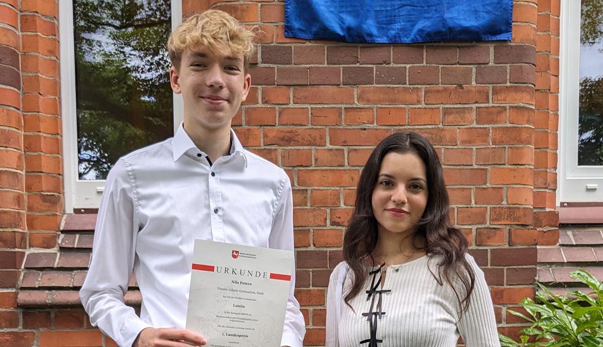 Beim diesjährigen Bundeswettbewerb Fremdsprachen haben Sara Anastasia Maria Bicescu aus der Klasse 10 bil in Englisch sowie Nils Peters aus der 10 mu und Victoria Becker aus der 10K2 in Latein hervorragende Ergebnisse erzielt. Bei der regionalen Preisverleihung im Gymnasium am Markt in Achim wurde Anastasia als 3. Landessiegerin ausgezeichnet. Nils wurde sogar 1. Landessieger und hat sich damit für die Bundesebne des Wettbewerbs in Berlin qualifiziert. Wir gratulieren beiden Preisträgern herzlich! Ansprechpartner ist Herr Schönstedt.