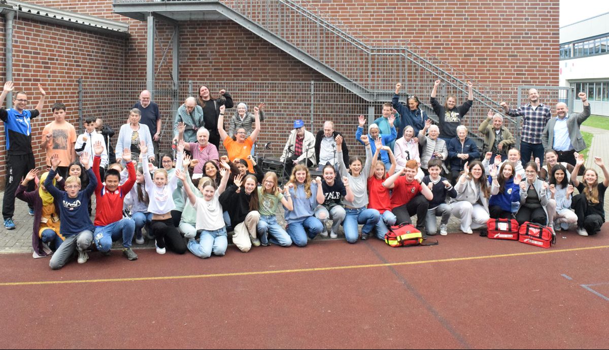 Mit Unterstützung der Schulsanitäts-AG und unter großer Beteiligung der Schülerinnen und Schüler aus der Hausaufgabenhilfe gelang die Begegnung von Alt und Jung, und die Senioren waren zu Recht stolz auf ihre Ausdauerleistung.