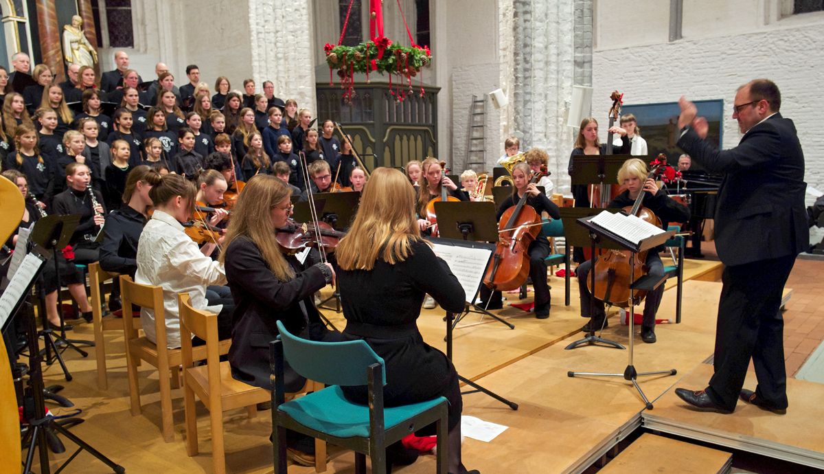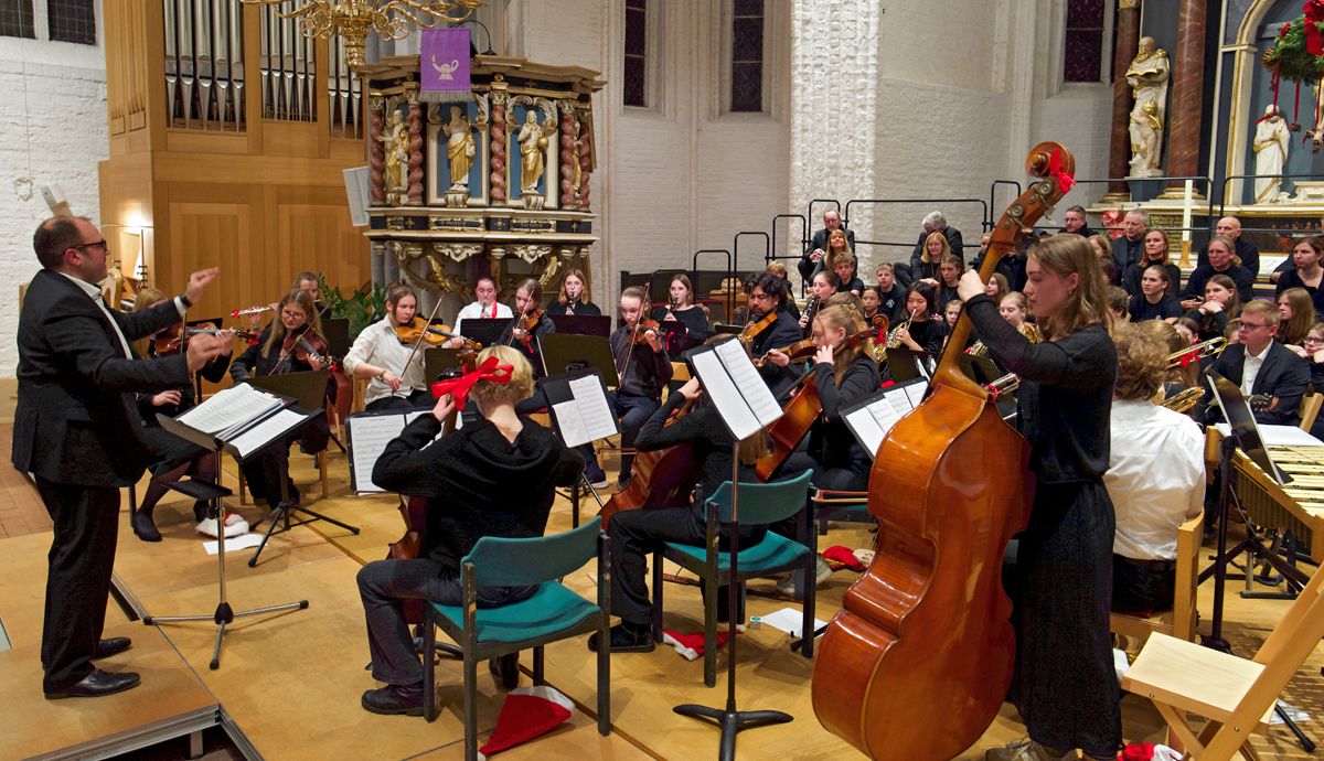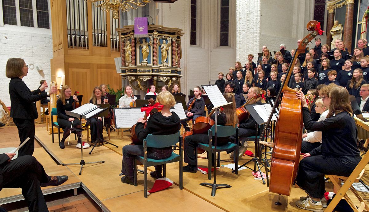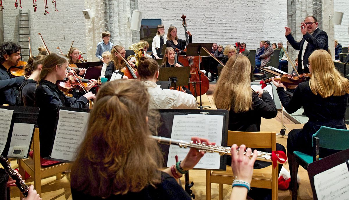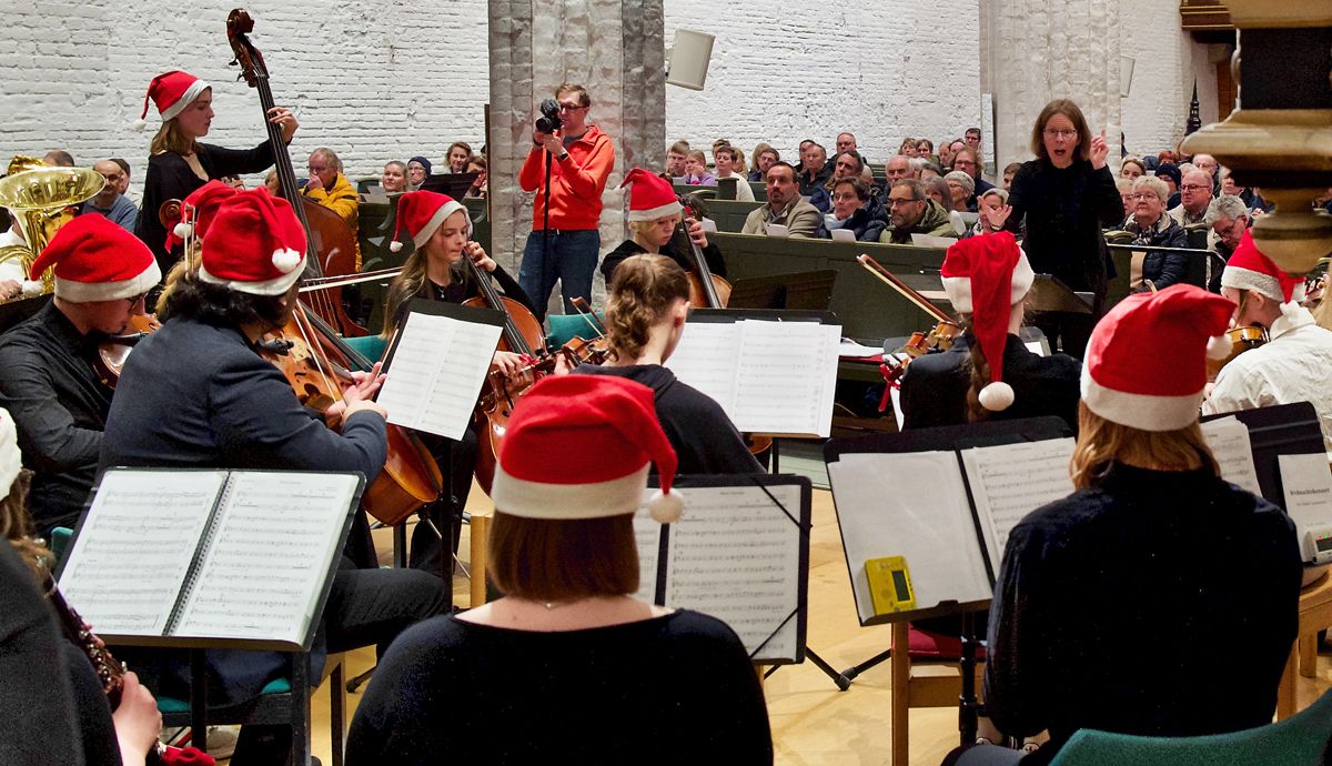 Wer der Stader Schulmusik verbunden ist, der hat alljährlich einen wichtigen Termin im Kalender stehen: das gemeinsame Weihnachtskonzert von Athenaeum und Vincent-Lübeck-Gymnasium. In ihm versammeln sich Musikensembles beider Schulen, das gemeinsame Schulorchester und die Chöre, um die Schulgemeinschaften auf die Weihnachtszeit einzustimmen. Da auch Ehemalige dieser Tradition treu bleiben, reicht die St. Wilhadi-Kirche nicht aus, um die Zuschauer zu fassen, sodass auch 2024 zwei Konzerte vor jeweils gut gefüllten Kirchenbänken veranstaltet wurden.