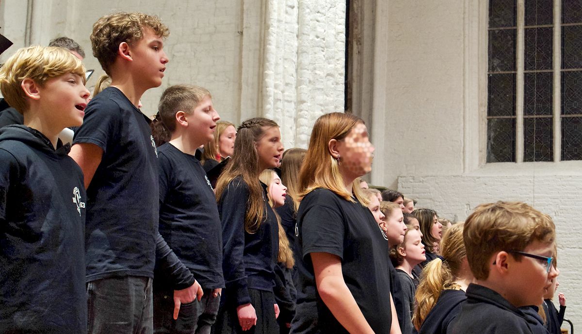 Die Besonderheit des Jahres 2024 war der zu stattlicher Größe aufgewachsene Chor des VLG. Dort hat Anne Warnat rund 40 Schülerinnen und Schüler, vorrangig der Jahrgänge 5 und 6, versammelt und stimmbildnerisch Großes geleistet. So ist ein wunderbar einheitlicher Chorklang entstanden, der gelegentlich von einem Projektchor aus Lehrerinnen, Lehrern und Sekretärinnen des VLG unterstützt wurde.
