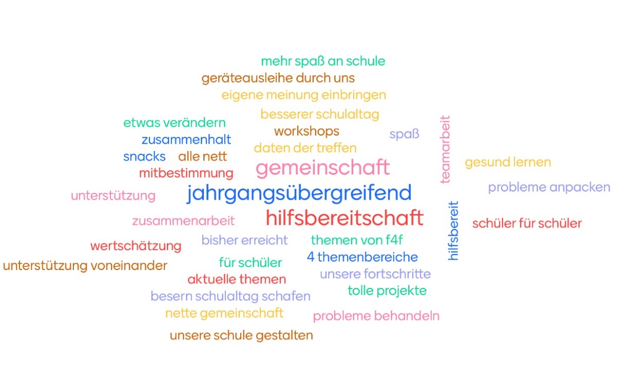 Unser Team setzt sich aus engagierten Schülerinnen und Schülern aller Jahrgänge sowie Eltern zusammen und wird durch die Lehrerinnen Frau Engels, Frau Grünberg, Frau Seeberger und Frau Sy unterstützt. Nach einem Jahr der Zusammenarbeit sagen die Schülerinnen und Schüler des fit4future-Teams Folgendes über die wichtigsten Aspekte des Präventionsprogramms: